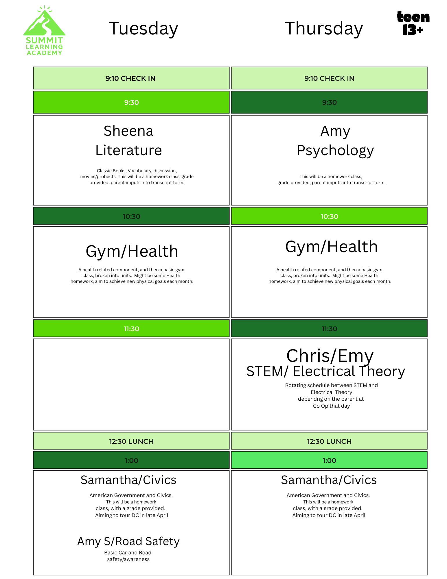 If you notice a blank space - that is because we are a Co Op and we are still enrolling, so YOU could be the person filling in that space!